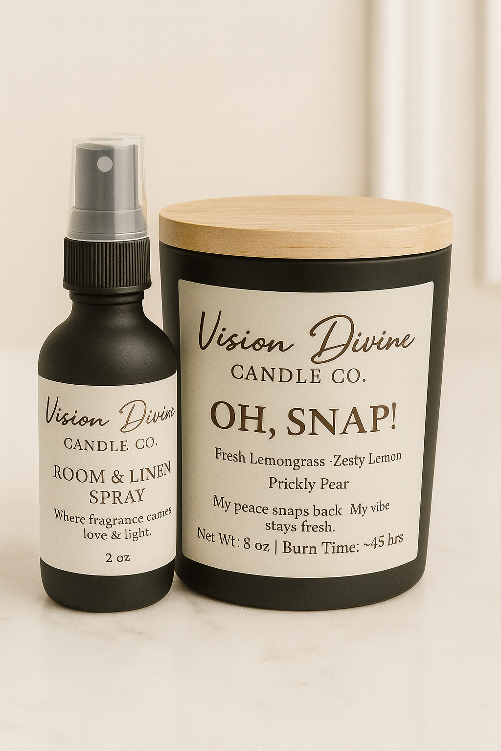 Set the mood. Elevate the vibe. Our Room Ready Set pairs an 8 oz candle with a matching 2 oz room spray for the ultimate fragrance experience. Light the candle to create a cozy, lasting atmosphere, then use the room spray for an instant refresh whenever you need it. Together, the work in harmony to fill your space with love, light, and unforgettable scent- because your space deserves to be ready at any moment.